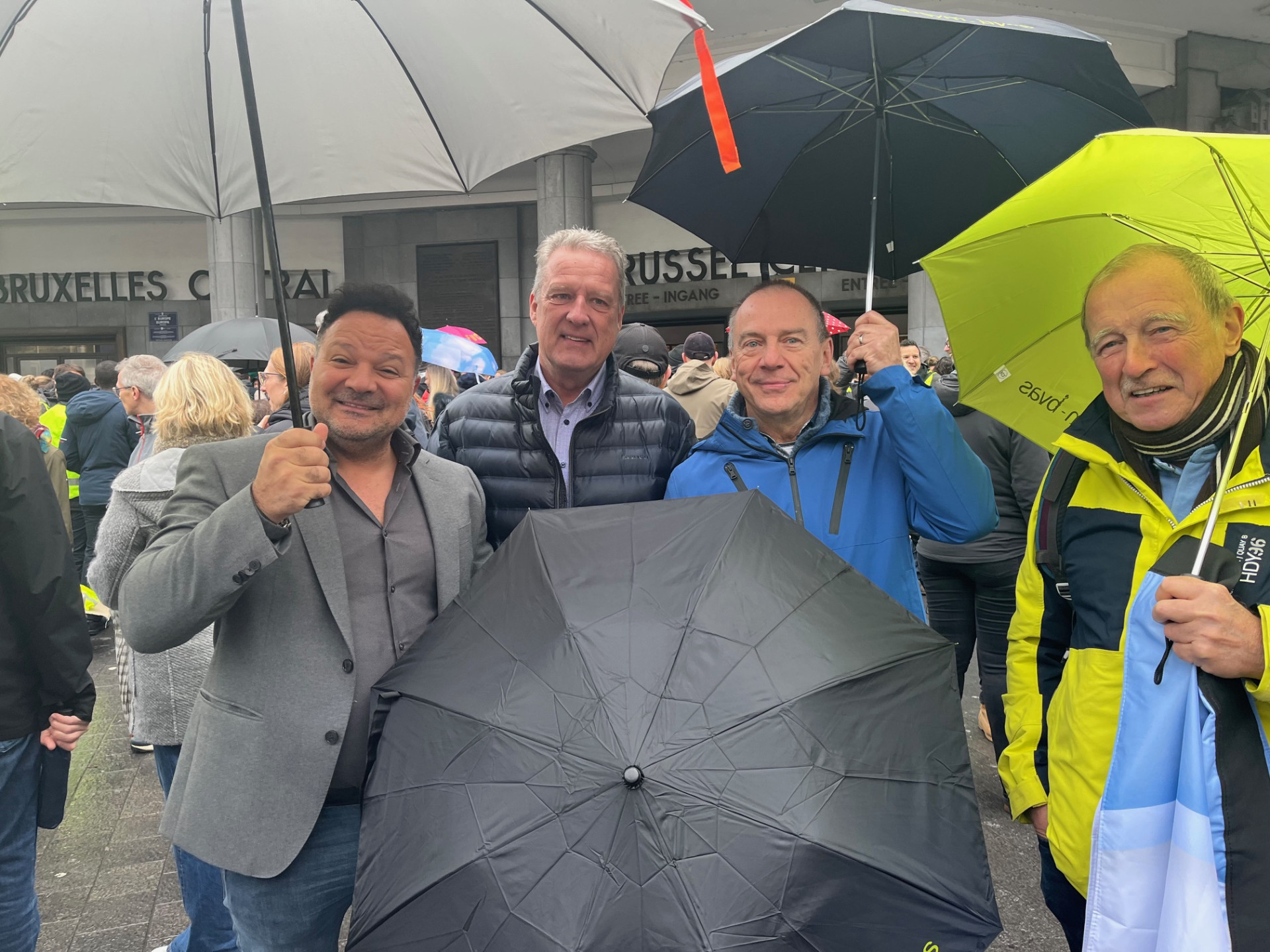 Ze kwamen vooral afgezakt uit Brussel en Wallonië, maar ook uit Vlaanderen. Ze begaven zich naar de Regentenlaan en de Wetstraat om een brief te overhandigen aan het kantoor van minister Vandenbroucke in de Wetstraat. Het initiatief voor deze “Mobilisatie Paraplu”-mars kwam van de Belgische Unie van Gezondheidswerkers (BUG). “De paraplu is een sterk symbool omdat we niet alleen de patiënten willen beschermen, maar ook ons gezondheidszorgsysteem”, leggen dr. Françoise Guiot, dermatoloog en woordvoerder van de beweging, en dr. Florence Bonkain, woordvoerder van de Vlaamse vleugel, de BUG, uit. (foto)