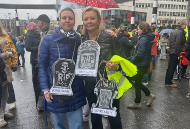 Tijdens de mars toonde dr. Françoise Guiot, dermatoloog en woordvoerder van de beweging, zich zeer bezorgd. Ze vertelt over haar dagelijks leven: ”Het is onbegrijpelijk wat er momenteel gebeurt. De nationalisering van de geneeskunde wordt niet eens meer verdoezeld. Ik denk al twee weken na over een omscholing. Ze ontmenselijken de geneeskunde! De gevolgen voor de patiënten zullen verschrikkelijk zijn."